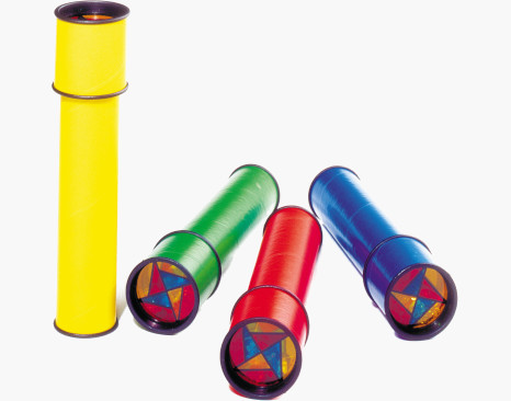 Mit dem Bausatz können Kinder ihr eigenes Kaleidoskop bauen und verschiedenen Muster krei...