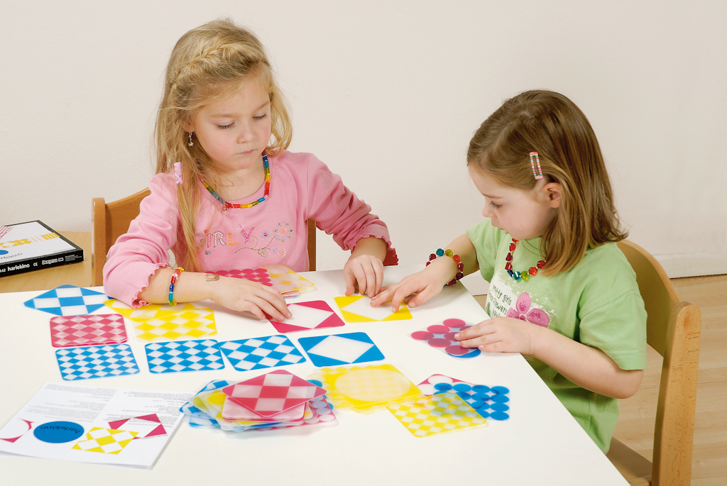 Der Reiz beim Spielen mit Kunststoff-Folie ist durch ihre Transparenz der Farbmischungseffekt und die Möglichkeit der Formenvielfalt.