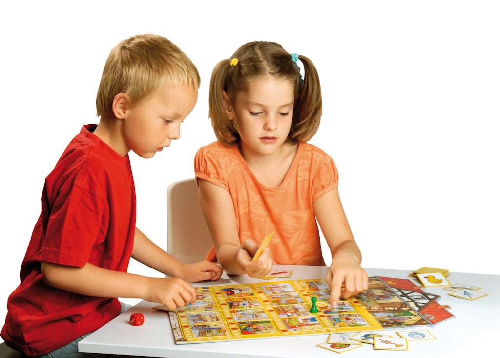 Einfache Spiele mit kurzer Spieldauer, erste Erfahrungen mit Spielregeln werden gemacht. Die Themen und die Gestaltung sind altersentsprechend.