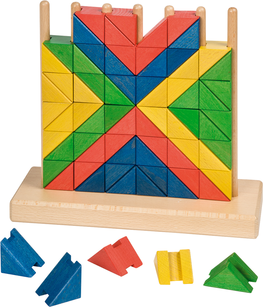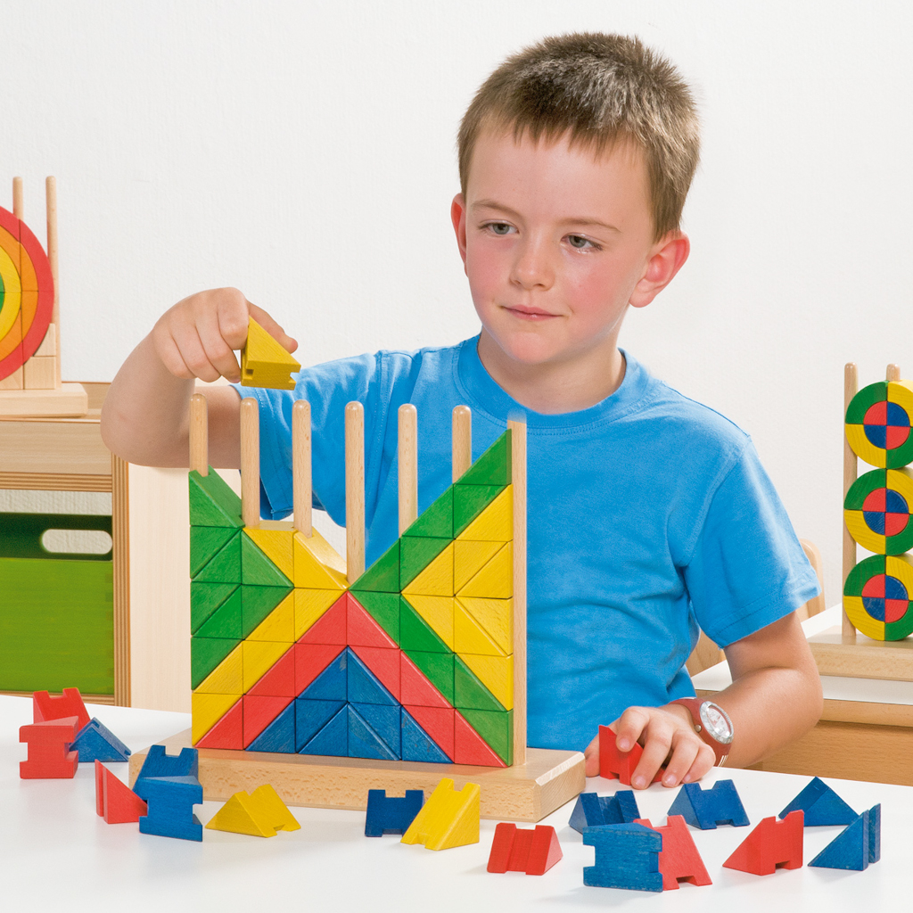 Diese Art Steckspiel ist eine besondere Herausforderung an das dreidimensionale Denken und Abstraktionsvermögen. Logisches und strategisches Denken, Konzentration sowie Feinmotorik werden dabei gefördert.