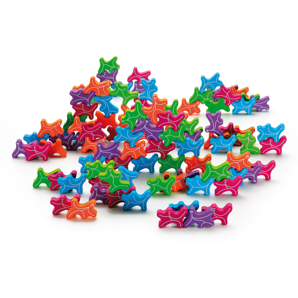 Reihen stellen, einen Turm stapeln, Fantasiegebilde erbauen oder anderes Bau- und Spielmaterial damit ergänzen. Das Spiel mit den Stapelgeistern ist für verschiedene Altersklassen interessant. Eine Bauvorlage ist nicht nötig.