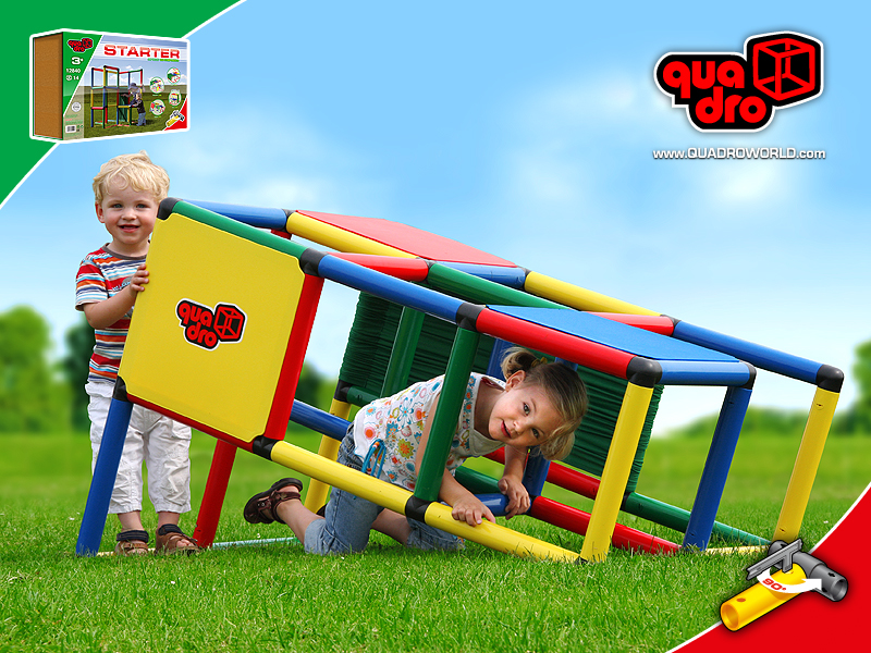 Mit dem Material dieses Baukastens können 14 verschiedene Modelle nach Bauanleitung gebaut werden. Die Rohre werden durch Kupplungen verbunden und mit Kunststoffschrauben befestigt. Die Bauwerke sind so stabil, dass sie als Kletterhaus benutzt werden können. Die Platten werden in ein Quadrat geklickt.