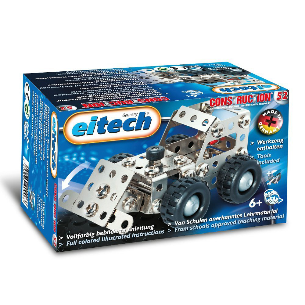 Die Packung enthält Material und Anleitung für drei verschiedene Traktor-Modelle (jeweils nur eines). Die Stahl-Winkel, Bleche und Streben werden mit Schrauben und Muttern verbunden. Nach Fertigstellung eines Bauwerkes lässt sich die Konstruktion einfach wieder zerlegen. Diese Art Konstruktionsmaterial erfordert Geduld und auch Übung und ist empfehlenswert für Kinder, die gerne mit Schraubenzieher und -schlüssel umgehen. Kinder sollten im freien Bauen und Konstruieren unterstützt werden.