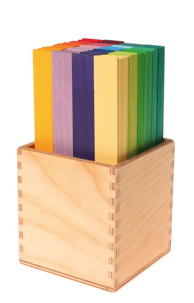 Das Farbenspektrum der Stäbchen ist ein großer Anreiz sich damit zu beschäftigen. So kann mit den Stäbchen frei gelegt oder gebaut werden, auch in Kombination mit anderem Spielmaterial. Es gibt aber auch eine Anleitung für den Bau einer Leonardo-Brücke oder einer Kuppel für ältere Kinder. Leonardo da Vincis geniale Konstruktionen: aus einfachen Latten kann man eine Brücke und eine Kuppel bauen, die sich selbst tragen. Ohne Leim, ohne Schnur und ohne einen Nagel oder Schrauben! Zum Aufbau braucht man eine ruhige Hand und etwas Fingerspitzengefühl!