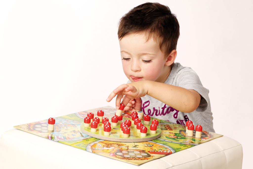 Einfache Spiele mit kurzer Spieldauer, erste Erfahrungen mit Spielregeln werden gemacht. Die Themen und die Gestaltung sind altersentsprechend.