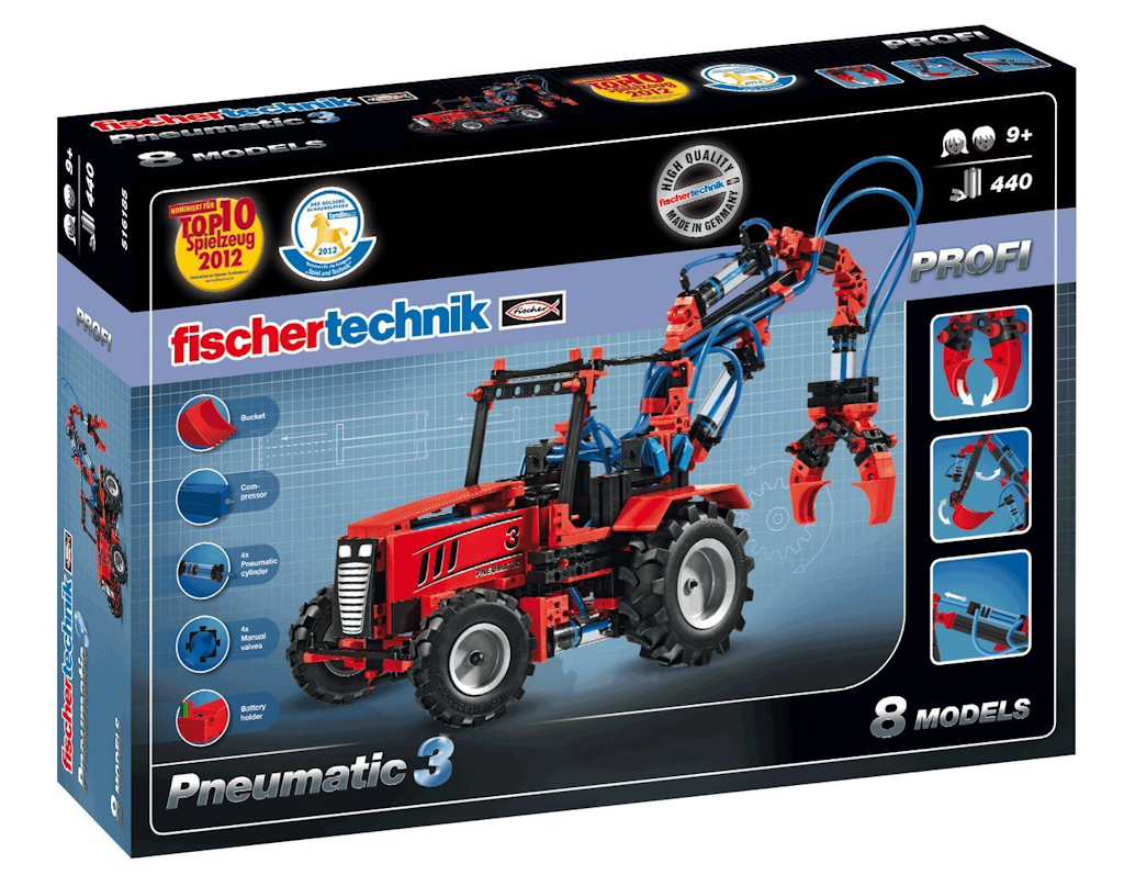 Material und Anleitung für vier Traktor-Modelle mit pneumatischen Funktionen: Frontlader, Bagger, Baumstammgreifer, Heuballengreifer Dazu sind noch vier Funktion und möglich: Doppelschiebetür, , Luftballon-Pumpe, Katapult. Spielerisch vermittelt der Baukasten die Grundlagen der Pneumatik. Ein didaktisch Begleitung vermittelt Hintergründigkeit zur Pneumatik und enthält Versuche zu den einzelnen Modellen.