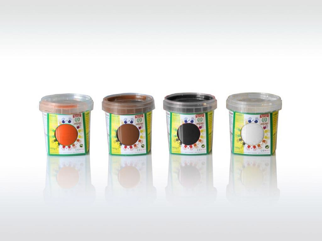 Verschiedene Farben in Kunststoffdosen à 150 g. Naturfarben mit Lebensmittelfarben. Mischbar, verdünnbar, wasserlöslich, trocken abreibbar, auswaschbar. Zur Ergänzung der Grundpackung bzw. zum Nachkauf.
