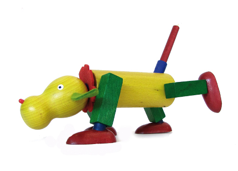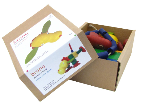 Die Kellner Steckfiguren sind ein besonderes Gestaltungsmaterial. Eine Figur/Packung besteht aus verschiedenen Einzelteilen aus naturbelassener oder farbig lackierter Buche mit Verbindungselementen aus Gummi bzw. Kunststoff. Damit lassen sich unterschiedliche Fantasiefiguren zusammensetzen. Bei Bruno ist das Thema "Bunter Hund".