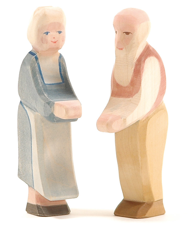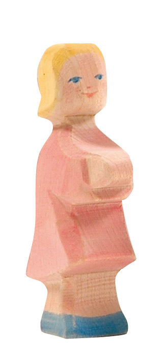 Holzpüppchen oder Figuren sind aus Vollholz geschnitzt und bemalt. Die Formgebung ist schlicht, ebenso die Bemalung was den Kind viel Freiraum für Fantasie und Verwendung der Figuren lässt. Sie können in schon vorhandenes Aufstellspielzeug wie Bauernhof oder Pferdestall integriert werden.