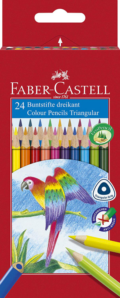 Intensive, leuchtende Farben reizen Kinder zum Malen und Zeichnen. Auch die Bruchsicherheit trägt zur Zufriedenheit bei, dafür muss aber auch ein geeigneter Spitzer verwendet werden. Die Farbvielfalt eines 24-er Kastens nutzen erst ältere Kinder oder Erwachsene. Stifte in ergonomischer Dreieckform, bruchgeschützte Mine durch Spezialverleimung.