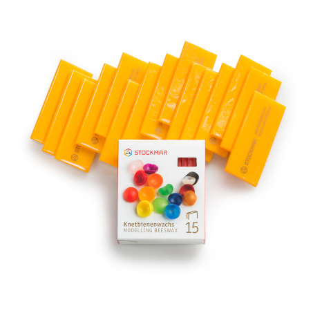 12 Farben 100*40*6 mm im Kartonetui. Oder Einzelfarben mit 15 Tafeln je 100*40*6 oder 4 Tafeln je 240*100*6 mm. In 15 Farbtönen erhältlich. Mit Bienenwachs.