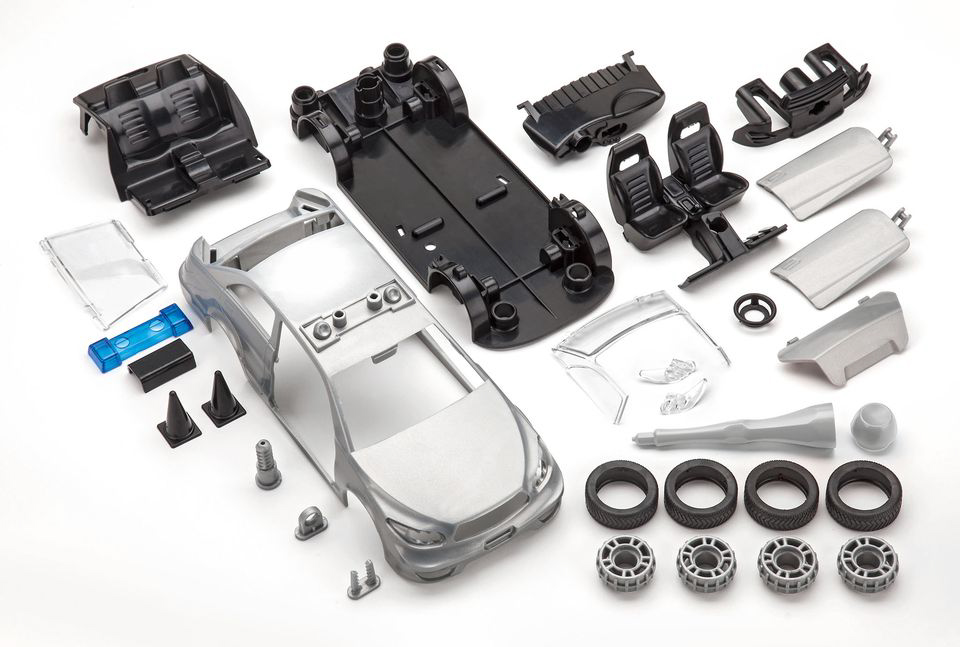 26 Teile + 24 Verbindungselemente + 2 Pylonen. ABS, Reifen TPE, Klarteile PS, Aufkleber PP-Folie. Bauzeit ca. 30 bis 45 Minuten. Länge ca. 23,5 cm.
