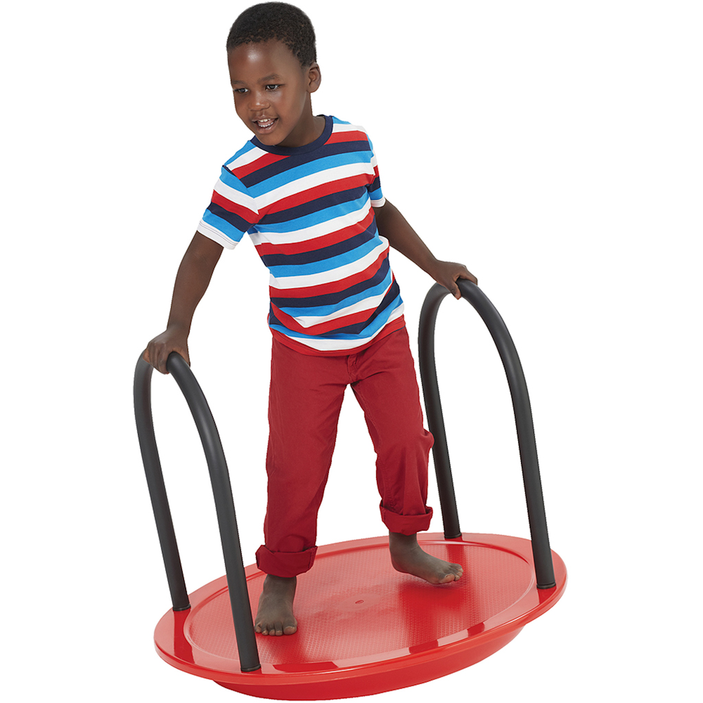 Die runde Wippe regt Kinder an auszuprobieren, wie sie sich in alle Richtungen bewegen können. Dazu stehen, sitzen oder liegen die Kinder auf der Wippe und schulen ihren Gleichgewichtssinn. Die runde Wippe eignet sich besonders für kleinere Kinder und kann von einem Kind allein oder zwei Kindern gleichzeitig genutzt werden.
