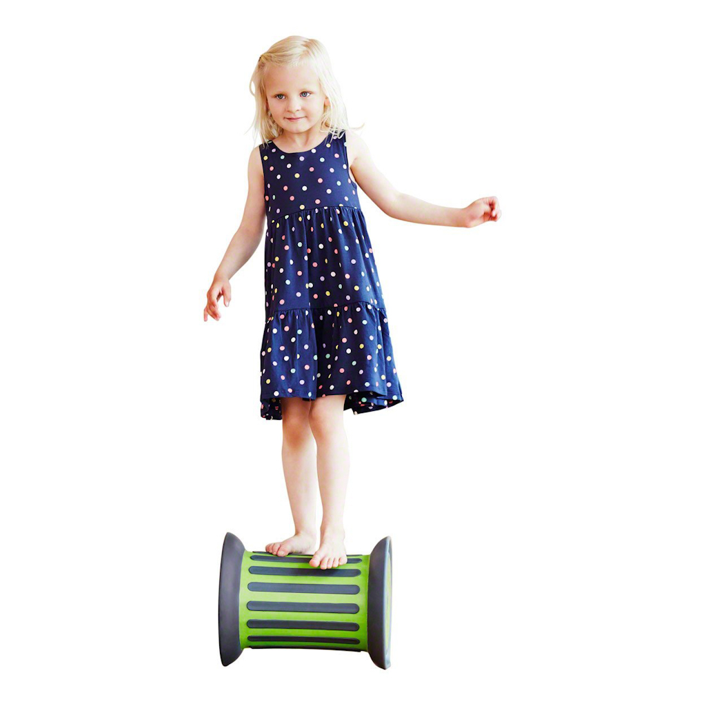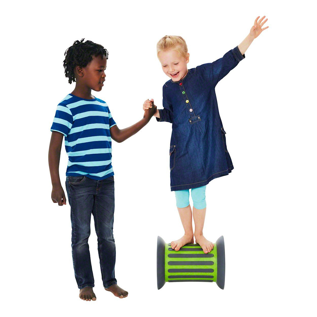 Mit dem Balanciergerät wird Gleichgewicht und Koordinationsvermögen trainiert. Durch die Sandfüllung lassen sich Tempo und Richtung besser regulieren. Jüngere Kinder brauchen zu Anfang meist Hilfe, um auf die Rolle zu steigen und auch beim Fortbewegen wird die Hand des Kindes noch gehalten. Die Auftrittflächen der Rolle sind aus Gummi und sorgen für Halt. Das Balanciergerät ist eher für Kindergruppen als für Familien geeignet, da es oft nur kurzzeitig benützt wird. Nur mit festen Schuhen oder barfuß zu benützen.