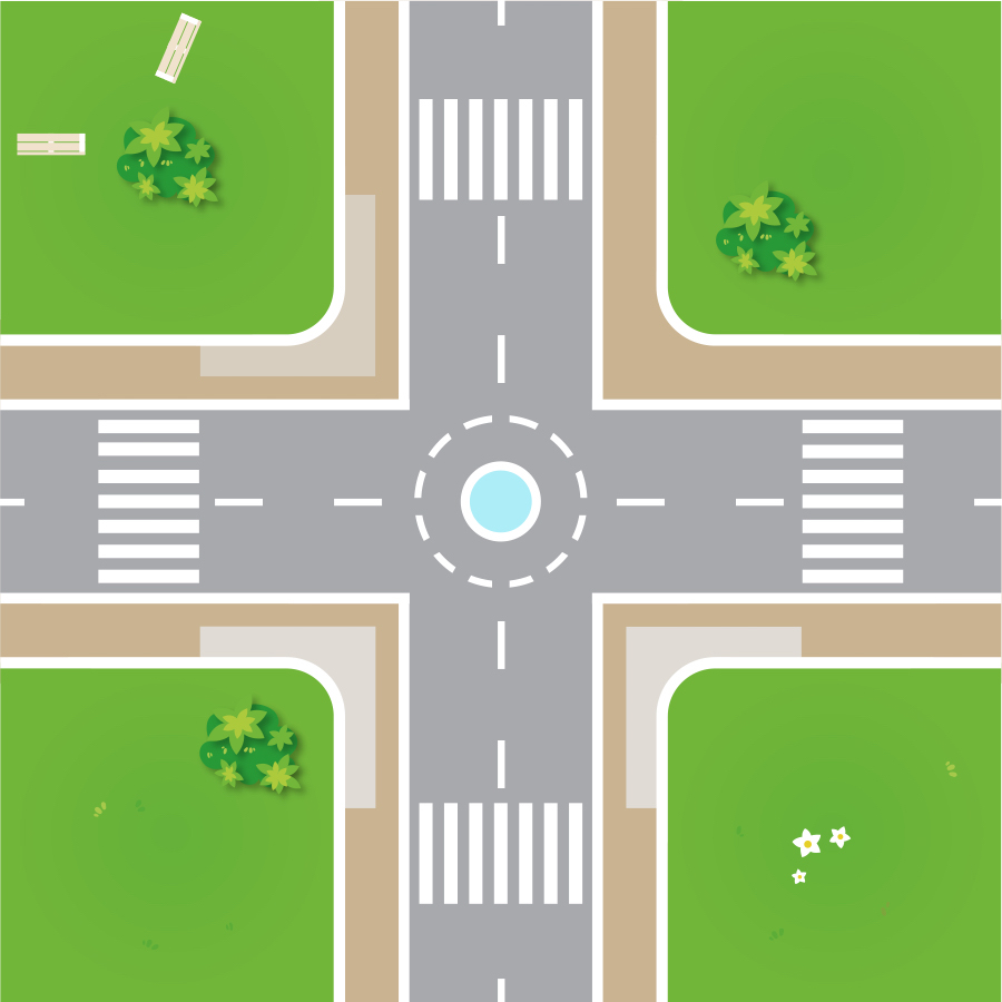 Die verhältnismäßig großen und quadratischen Matten lassen sich zu Straßen und Landschaften zusammen legen. Das neutrale und ruhige Design lässt viele Spielmöglichkeiten zu. Bunt und lebendig werden Landschaft und Straßen durch das Aufstellspielzeug, womit Kinder nach eigenen Vorstellungen ihre Spielwelten gestalten. Die Matten sind durch die gummierte Unterseite rutschfest und durch die einzeln kaufbaren Teile jederzeit erweiterbar.