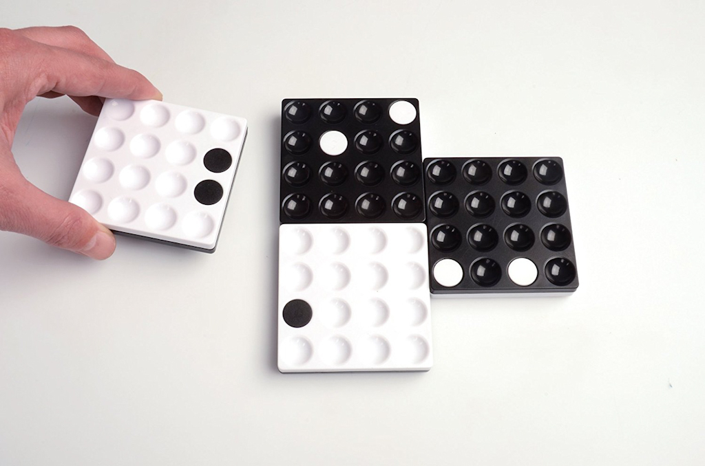 Die vier Magnetraster werden aneinandergeklickt. Die erlaubten Konfigurationen sind in einem Diagramm im Aufgabenheft dargestellt. Aufgabe ist es, alle Puzzleteile auf dem entstandenen Spielbrett unterzubringen. Wobei schwarze oder weiße Punkte nicht belegt werden dürfen. Alle Aufgaben haben mindestens eine Lösung, einige Aufgaben haben mehrere Lösungen, andere Aufgaben haben faste Tausende von Lösungen.
