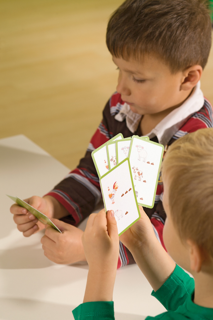 Bei dem Kartenspiel versuchen die Spieler reihum, ihre 5 Handkarten so schnell wie möglich abzulegen. Auf den Karten sind verschiedene Tiere (Kuh, Schaf, Esel, Hahn) in unterschiedlichen Größen abgebildet. Die Anzahl der Häufchen erleichtert die Einschätzung der Größe der Tiere und entscheidet, welche Karte passend abgelegt werden darf. Durch das Erkennen und Benennen von Größenverhältnissen werden erste mathematische Vorläuferkompetenzen gefördert. Beim Ablegen der Karte soll das entsprechende Tiergeräusch imitiert werden. Das Nachahmen der Geräusche der abgebildeten Tiere verleiht dem Spiel einen witzigen Charakter und erleichtert die Interaktion und Kommunikation. Wer zuerst keine Karten mehr auf der Hand hat, gewinnt das Spiel.