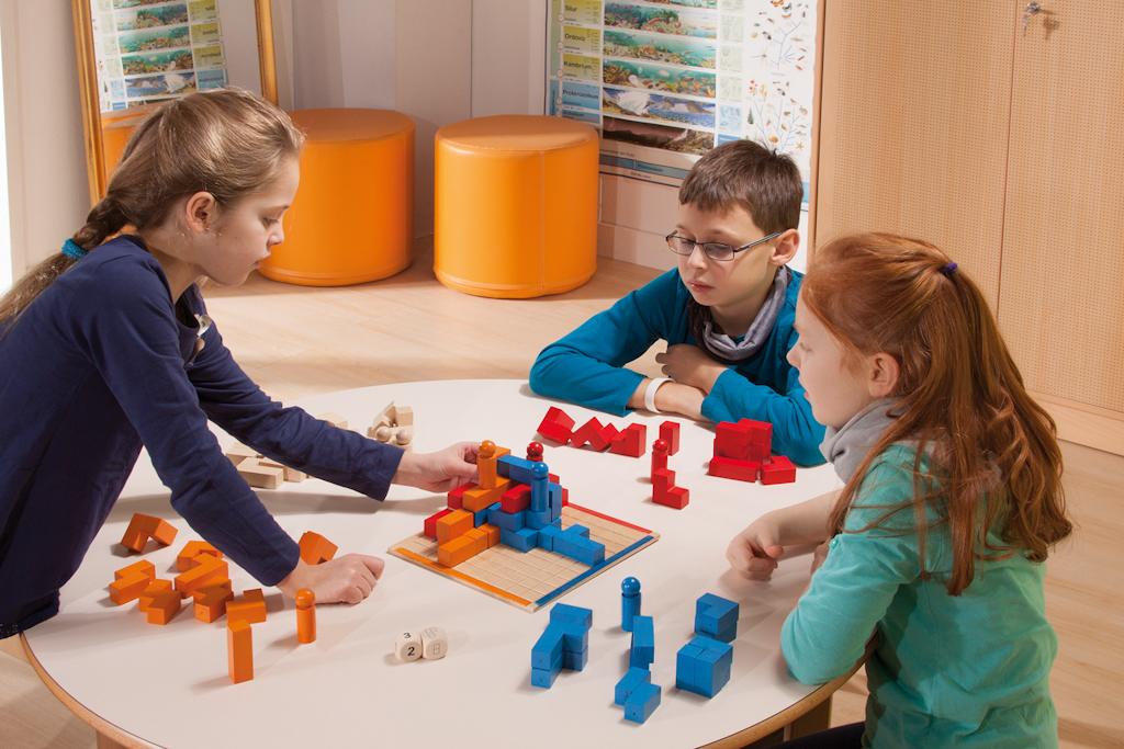 Einfache Spiele mit kurzer Spieldauer, erste Erfahrungen mit Spielregeln werden gemacht. Die Themen und die Gestaltung sind altersentsprechend.