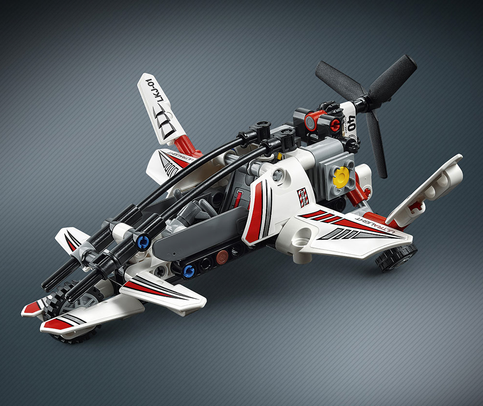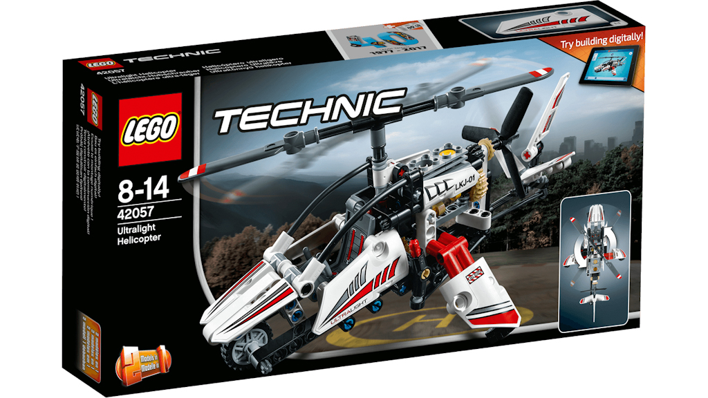 Dieses 2-in-1-Modell von LEGO® Technic lässt sich in ein Experimentalflugzeug umbauen. Um die Modelle bauen zu können, müssen die digitalen 3-D-Bauanleitungen befolgt werden, die in der kostenlos erhältlichen interaktiven LEGO App zu finden sind. Der Hubschrauber besitzt ein aerodynamisches Hightechdesign, ein offenes Cockpit mit detailgetreuem Sitz, drehende Haupt- und Heckrotoren, ein steuerbares Ruder sowie ein detailreiches Triebwerk mit beweglichen Kolben. In dieses Modell ist auch ein besonders verzierter Stein eingebaut, der zur Feier des 40-jährigen Jubiläums von LEGO® Technic entwickelt wurde.