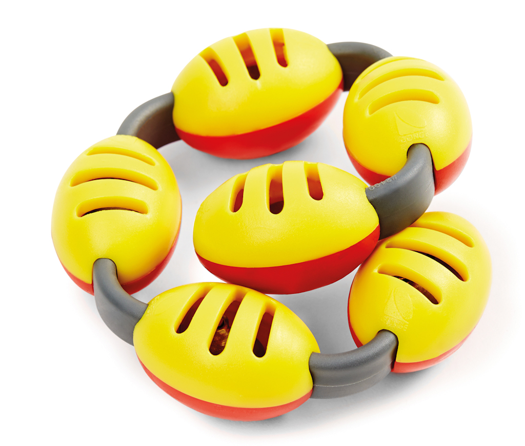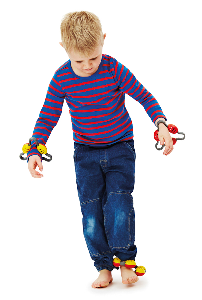 Die Body Bells - Twist mit 6 Glocken - bestehen aus starken Kunststoffschalen mit Glocken, die durch starre Gummigelenke miteinander verbunden sind. Die farbenfrohen Body Bells erregen Aufmerksamkeit und lassen sich leicht an Körperteilen wie Armen, Beinen, Kopf oder Schultern platzieren. Der Hauptzweck der Body Bells besteht darin, dass Kinder lernen, sich zu bewegen, ohne dass die Glocken läuten. Dies erfordert langsame Bewegungen und eine starke Konzentration auf die Körperkontrolle, die die Entwicklung des propriozeptiven Gefühls stimuliert und die Konzentrationsfähigkeit aktiver Kinder stärkt. Body Bells können auch für andere Zwecke von allen Altersgruppen, wie rhythmische und musikalische Aktivitäten verwendet werden. Die Ringversion, mit drei Glocken, kann leicht an den Armen oder Beinen gezogen werden, während die Flexibilität der Sechsglockenversion es ermöglicht, dass sie auf dem Kopf, Schultern oder anderen größeren Körperteilen platziert werden kann.