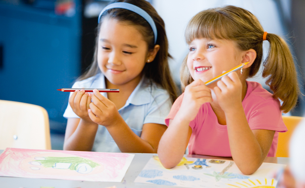 Jüngere Kinder bevorzugen anfangs dickere oder dreieckige Stifte.