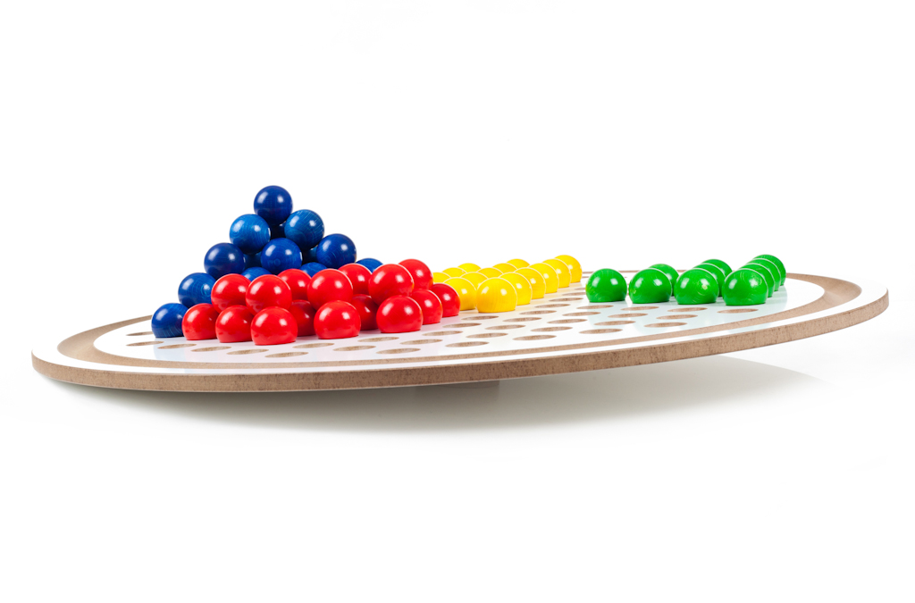 Auf der Unterseite des Balancierbretts ist mittig ein flacher Kreisel befestigt. Auf dem Brett , das mit wird mit den Kugeln gebaut. Dazu ist am Rand des Brettes eine durchgehende Rinne und innen 121 Vertiefungen eingefräßt. Das Brett neigt sich, oder wschwingt sanft mit dem Gewicht der Kugeln. Es verlagert beim Bauen sein Gleichgewicht. Mit Kugeln bestückt kann es sogar angeschoben und wie ein Kreisel gedreht werden, wenn die Kugeln das Brett in Balance halten. Es ibt keine Regeln, aber unzählige Möglichkeiten für freies und spielerisches Experimentieren. Allein oder zusammen mit anderen Kindern.