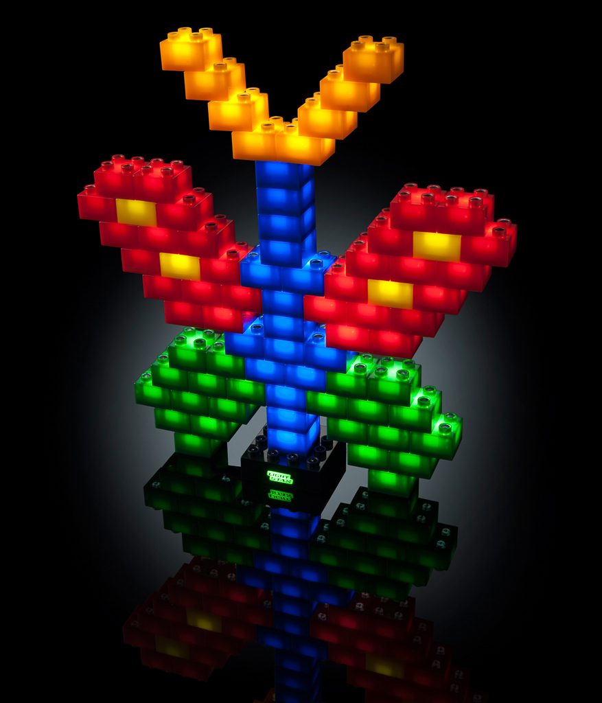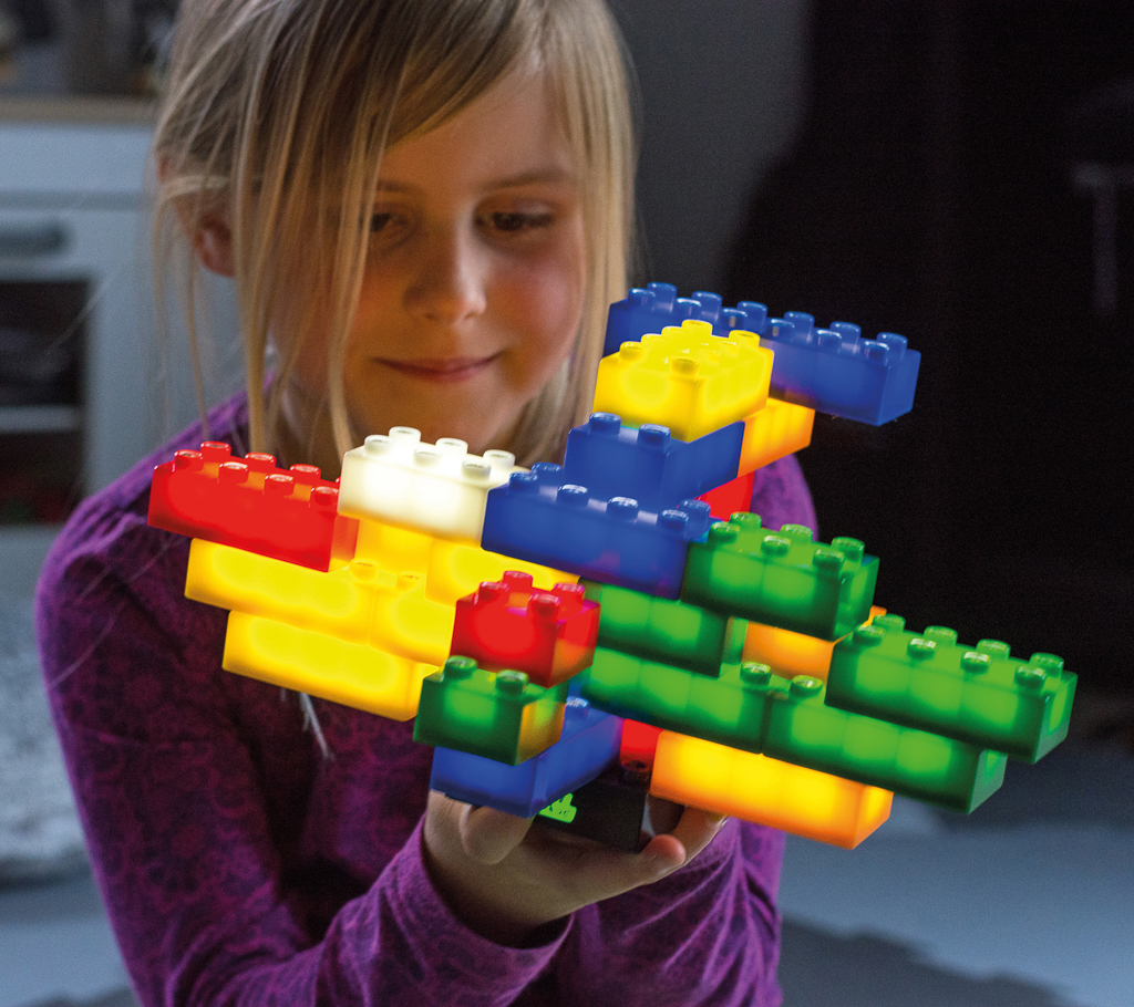 Mit den Elementen kann frei und kreativ gebaut werden, besonders in Verbindung und Kombination mit nicht-leuchtenden Steck-Bausteinen dieser Art. In der beigefügten Broschüre sind Bauanleitungen und Ideenvorlagen in unterschiedlichen Schwierigkeitsstufen enthalten, die nachgebaut werden können und auch Anregeungen für eigene Erfindungen darstellen. Die USB-Power-Base wird per USB-Anschluss betrieben und kann optional mit 3 AAA Batterien die LED-Steine mobil und flexibel zum Leuchten bringen.