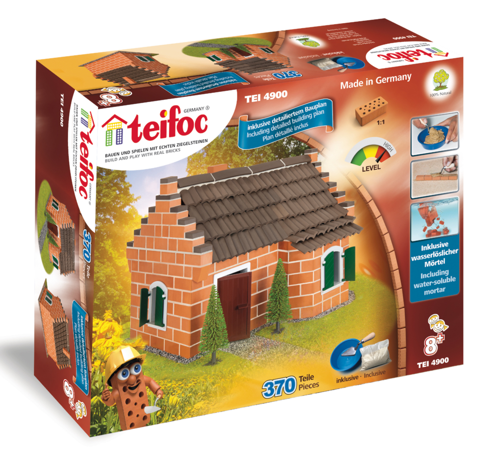 370 Teile, unterschiedliche Ziegelsteine, wasserlöslicher Mörtel (Sand + Maisextrakt), 1 Kelle, 1 Mörtelschale PP, Bauanleitung. Ganzer Ziegel 3,2*1,7*1,5 cm.