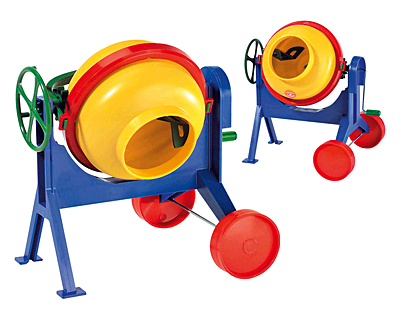 Der Betonmischer ist stabil und hat echte Funktionen. Mit der Drehkurbel kann der Mischer in Gang gesetzt werden und mischt Sand oder Kies u.ä. Auch die Kippfunktion ist dem Original nachempfunden.