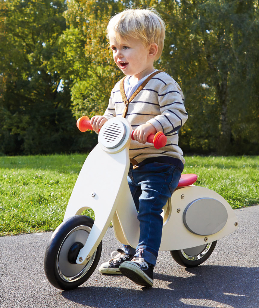 Mit dem Laufrad macht ein Kind seine ersten Erfahrungen mit dem Fahren auf zwei Rädern. Das Fahrzeug wird mit den Füßen laufend vorwärts bewegt. Laufräder können verhältnismäßig schnell werden (besonders bei Luftbereifung), deshalb nur im geeigneten Spielbereich und Schonraum unter Aufsicht benützen. Das Tragen eines Helms wird empfohlen. Bedenken Sie auch den natürlichen Bewegungsdrang und das Temperament von Kindern und machen sie auf mögliche Gefahren aufmerksam. Ab ca. 2 Jahren.