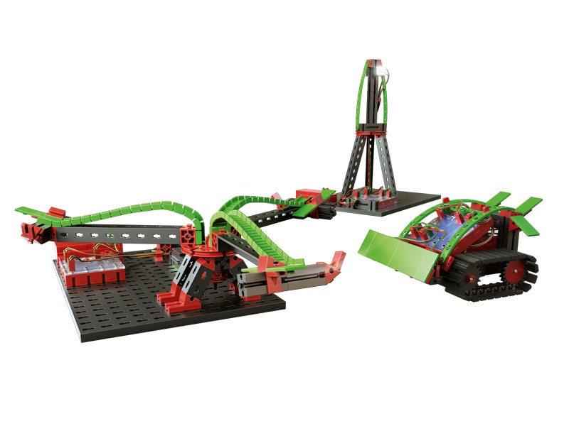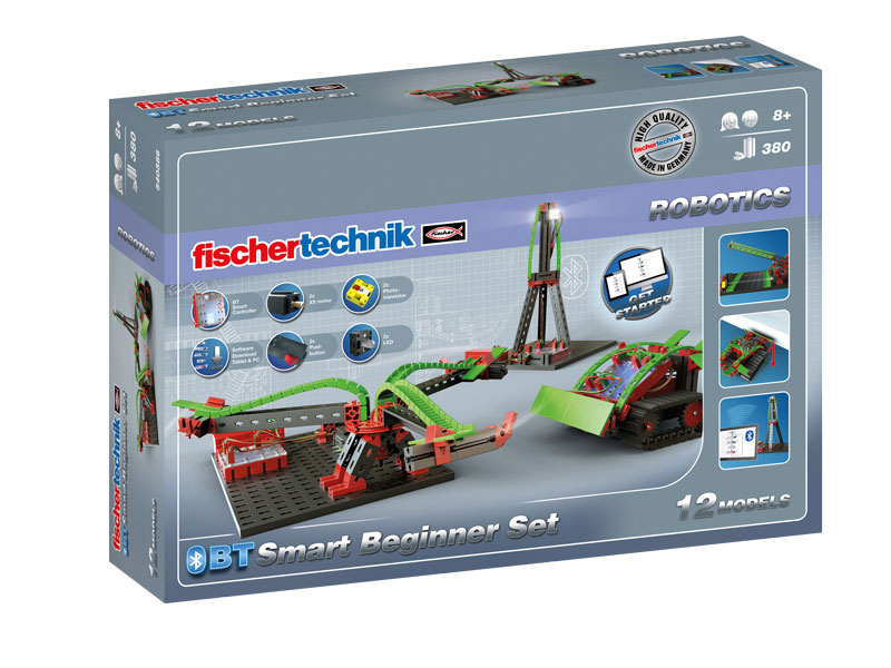 Das komplette Einsteigerpaket für Kinder ab 8 Jahre. Aus über 380 Bauteilen und mit Hilfe der Sensoren (Fototransistoren, Taster) und der Aktoren (XS Motoren, Lichtschranken LEDs) können Kinder 12 leicht verständliche Modelle wie Händetrockner, Karussell, Schranke, Förderband mit Stanzmaschine oder auch mobile Raupenmodelle konstruieren. Die Steuerung »BT Smart Controller« mit 4 Eingängen für Sensoren und 2 Ausgängen für Motoren oder Lampen verfügt über eine USB-Schnittstelle und eine Bluetooth 4.0 Schnittstelle. Die Software »ROBO Pro Light« (zum Download) ermöglicht eine schnelle, anschauliche und leicht verständliche Programmierung der Modelle. Zusätzlich gibt es auch die Möglichkeit die Modelle mit dem Tablet (zunächst Android) über eine App zu programmieren. Das ausführliche didaktische Begleitmaterial, welches auf dem fischertechnik eLearning-Portal zur Verfügung steht, unterstützt den Lernprozess der Kinder und erklärt leicht verständlich die Programmierung.