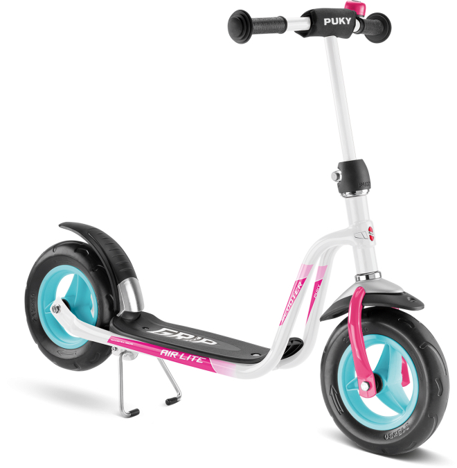 Der Puky-Roller überzeugt in Qualität, Funktionalität und Design. Zwischen Laufrad und Fahrrad ist der Roller immer noch ein beliebtes und sinnvolles Fahrzeug. Durch das Stehen auf einem und Abstoßen mit dem anderen Bein sind dabei auch andere Bewegungen und Anforderungen an die Körperkoordination gefordertund die Bein- und Rumpfmuskulatur wird gestärkt. Die Kickbremse ist im hinteren Schutzblech integriert und so gleichermaßen mit dem linken und rechten Fuß bedienbar.