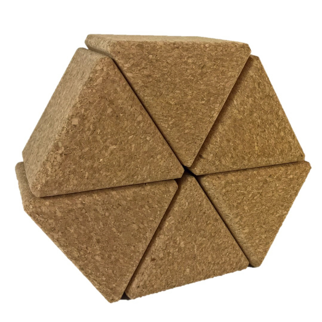 Bausteine aus Preßkork: 6 große Dreiecke 9*9*9 cm.