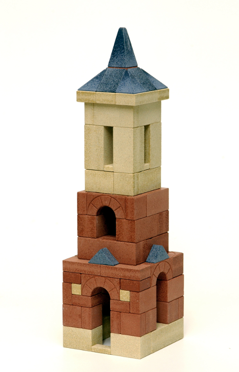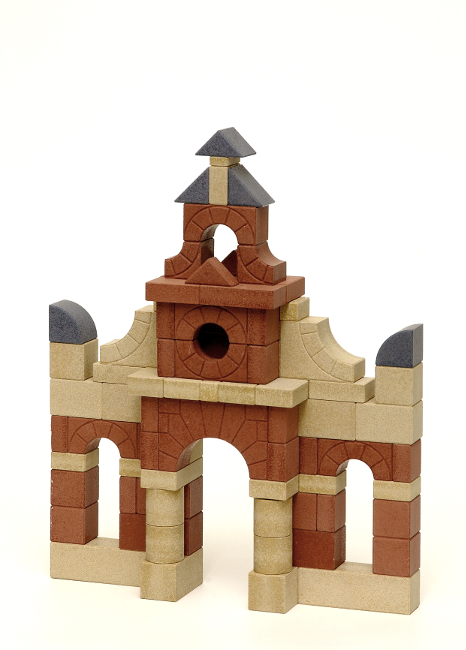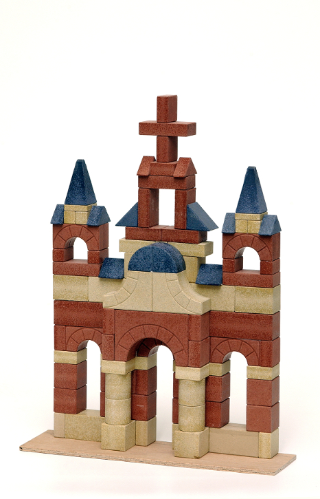 Mit den Bausteinen aus Stein in geometrischen Grundformen kann vom einfachen Stapeln bis zum komplizierten Bauwerk alles gebaut werden. Dieses Baumaterial lässt Kinder differenzierte Erfahrungen machen, da das Zusammenhalten allein auf der Statik und der Präzision beim Bauen der Steine basiert.