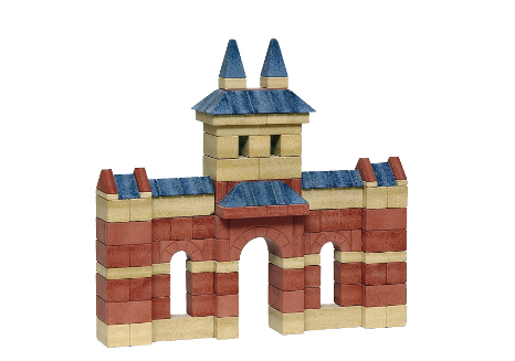 Mit den Bausteinen aus Stein in geometrischen Grundformen kann vom einfachen Stapeln bis zum komplizierten Bauwerk alles gebaut werden. Dieses Baumaterial lässt Kinder differenzierte Erfahrungen machen, da das Zusammenhalten allein auf der Statik und der Präzision beim Bauen der Steine basiert.