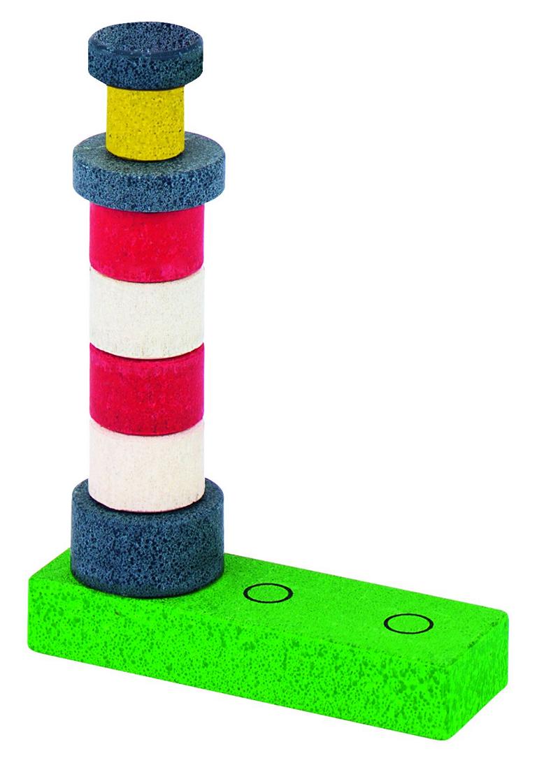 Der Leuchtturm soll von einer Seite der grünen Insel auf die andere versetzt und dort genauso in der vorgegebenen Reihenfolge wieder aufgebaut werden. Dabei darf jeweils immer nur ein Stein bewegt werden. Profis schaffen das in 35 Zügen.