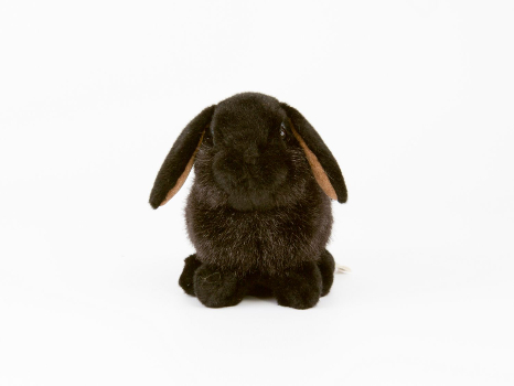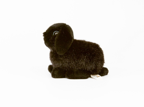 Webfell, schwarz, weiß oder rost. Füllwatte. Sicherheitsaugen PMMA, Logo Altmessing Nickelfrei. Bemalung Wasserfarben, Acryl. Handwäsche 30°. Gewicht 140 g. L 18 cm.