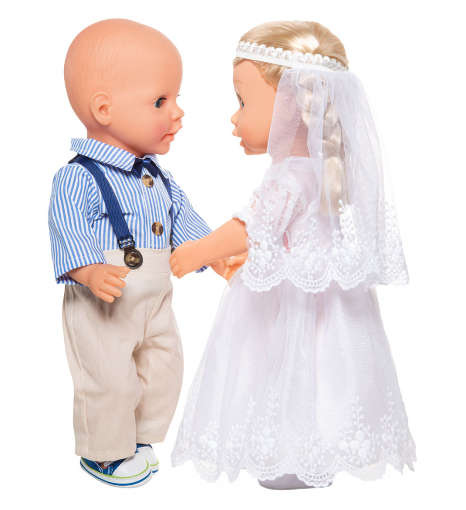 Spitze: 90 % Chinlon, 10 % Spandex; oberer Tüllrock: 60 % Baumwolle, 40 % Nylon; unterer Tüllrock: 100 % polyester; Unterkleid: 100 % polyester; Elastikband des Schleiers: 100 % Polyester. Kleiderbügel (Sperrholz). Für Puppengröße 28-35 cm + 35-45 cm.