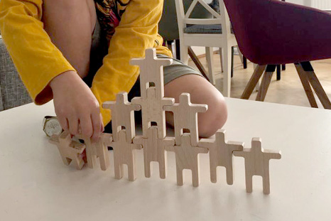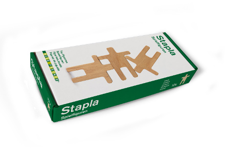 Bei STAPLA handelt es sich um eine einfach gestaltete und gerade deshalb sehr vielseitige Holzfigur. Kinder können damit stapeln, senkrechte Türme, waagerechte Brücken, Bögen, Pyramiden und lange Dominoketten bauen. Auch Erwachsene haben Spaß daran die unterschiedlichen Spielmöglichkeiten zu entdecken. Die Figuren eignen sich aber auch für das kindliche Rollenspiel. Da sie kein Gesicht und auch sonst keine besonderen Merkmale haben, sind sie ohne Vorgaben und fantasievoll einzusetzen. Für Institutionen geeignet.