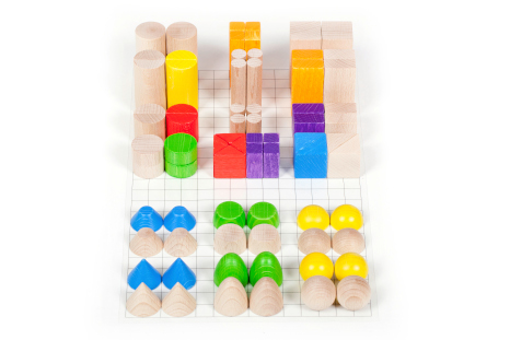 Neben dem freien Bauen können Kinder auch exakt nach Raster gestalten und planen. Dabei dient die mitgelieferte Rasterfolie als Kopiervorlage. Gerade bei dieser Spielvariante lernen Kinder die mathematischen Bezüge der einzelnen Formen zueinander besser zu verstehen.