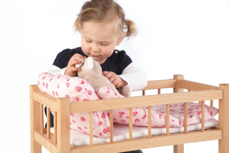 Ein stabiles Puppenbett ist aus Holz und gut verarbeitet.