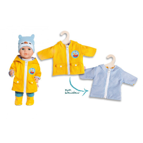 Puppenkleidung muss einiges aushalten und deshalb gut verarbeitet sein. Die Kleidung ist so geschnitten, dass sie sich auch von jüngeren Kindern gut an- und ausziehen lässt. Der Wende-Anorak hat einen stabilen Reißverschluß und Eingriffstaschen mit Druckknöpfen. Wichtig: Vor dem ersten Gebrauch waschen. Puppenzubehör kann ein spielanregendes Geschenk für den Kindergeburtstag oder Mitbringsel sein.