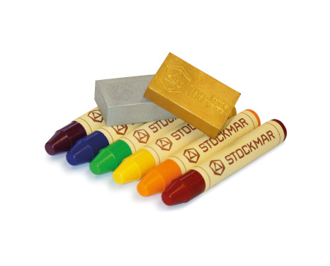 Mit farbintensiven Wachsmalstiften können Kinder malen, zeichnen, Farben schichten, Bilder kratzen und Farben schmelzen. Je nach Alter und Entwicklungsstufe ergänzt mit weiteren Farben bleibt das Gestalten mit den bruchsicheren Stiften interessant.