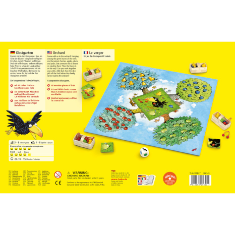 Ziel des Kooperationsspieles ist es, verschiedene Früchte von den Bäumen im Garten zu ernten, bevor der Rabe als Puzzle fertiggestellt ist und die Früchte auffressen kann. Der Farbwürfel bestimmt die Obstsorte.