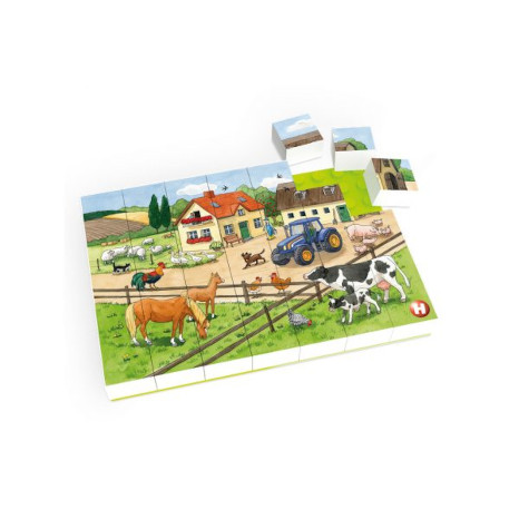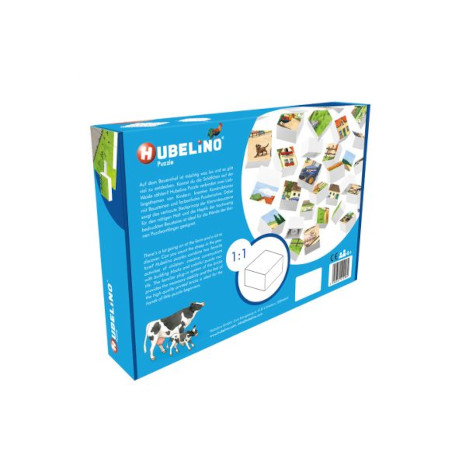 Die Puzzleteile von Hubelino sind kompatibel mit gängigen Klemmbausteinen und deshalb ist das Steckprinzip vielen Kindern bekannt. Zusammengefügt wird anhand der Bilder, da jedes Puzzleteil eine quadratische Form hat. Die Grundplatte sorgt für die nötige Stabilität und hält die Puzzleteile fest zusammen. Die Thematik kann auf das Interesse des Kindes abegestimmt sein.