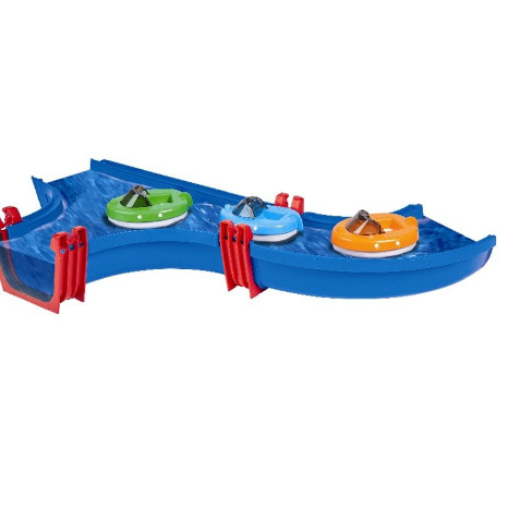 Ein Kanalsystem zum Zusammenstecken mit Dichtungen wird mit Wasser befüllt. Verschiedene Aufbaumöglichkeiten mit Ergänzungen, wie Kurven, Straßen, Pumpen, Wasserfällen, Booten oder Figuren ergeben vielfältige Spielmöglichkeiten.