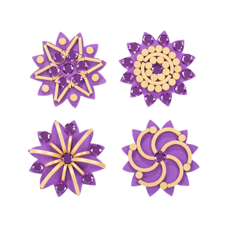 Mit dem Material können viele verschiedenen Mandalas gestaltet werden. Die beigelegten Pinzetten helfen, die filigranen Schmuckelemente zu greifen und gezielt abzulegen.