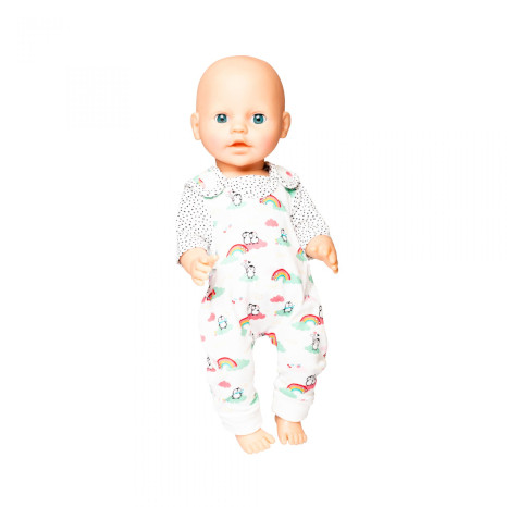 2 tlg. Bekleidungsset mit Klettverschlüssen. Mit Holzkleiderbügel. Für Puppengrößen 28-33 cm und 35-45 cm.