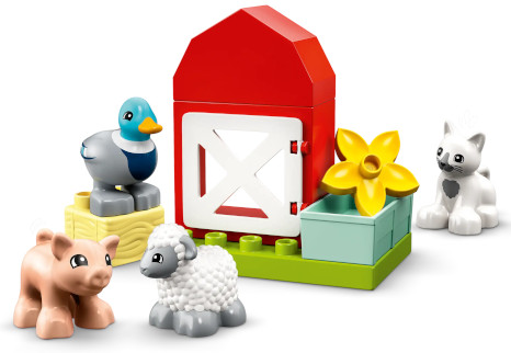 Der übersichtliche Inhalt und die großen Teile sind für jüngere Kinder ein Einstieg in die Welt des Spielens und Konstruierens. Das Set besteht aus einer kleinen baubaren Scheune, einem Schwein, einem Schaf, einer Ente, einer Katze und einem Heuballen.