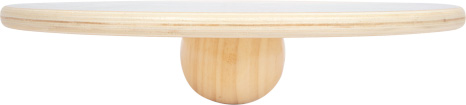 Das Balancierbrett mit zwei auf der Unterseite einschraubbaren Holzkugeln ist im Schwierigkeitsgrad individuell auf Alter und Können von Kindern anpassbar. Dafür sind vier Schraublöcher an der Unterseite angebracht, so dass die Kugeln an verschiedenen Stellen eingeschraubt werden können. Die Oberfläche ist relativ glatt, deshalb wird am besten barfuß balanciert.